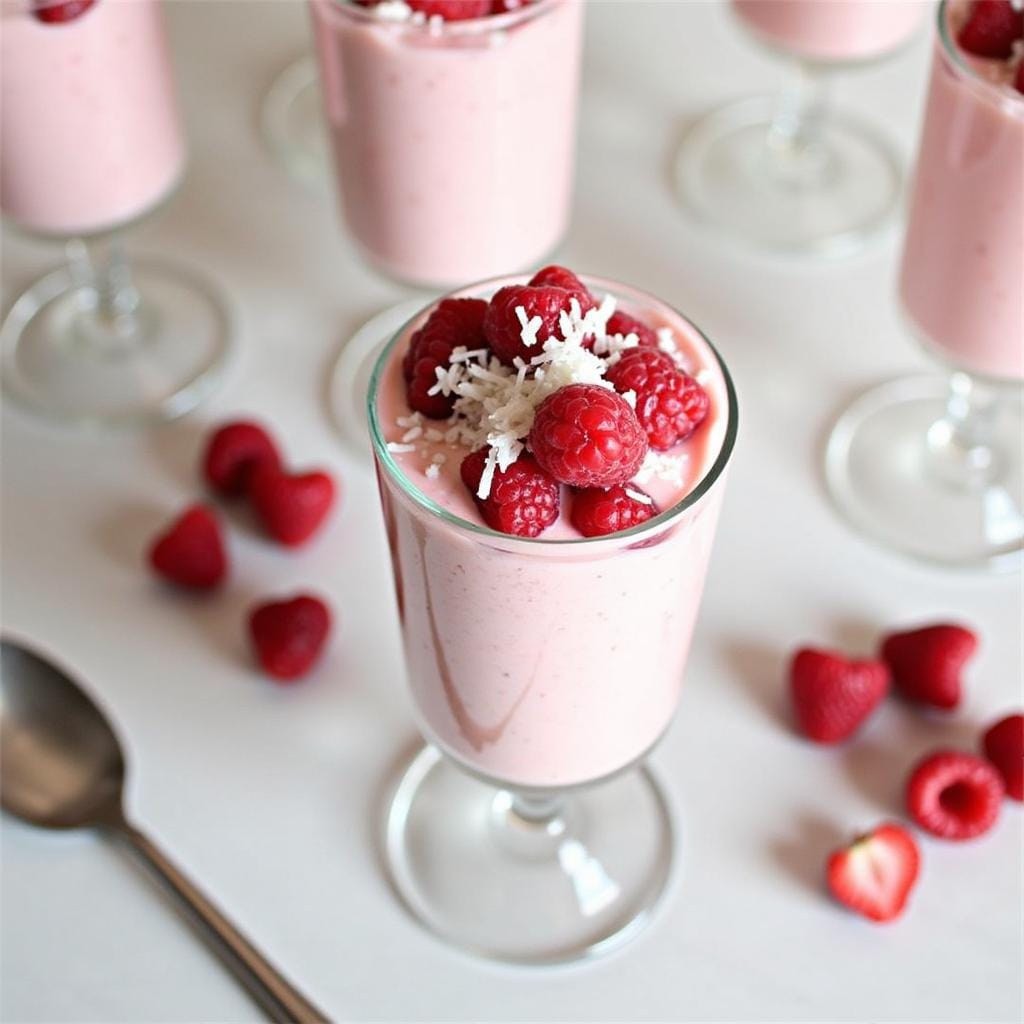 - Layer coconut yogurt, raspberries, and granola in a glass.