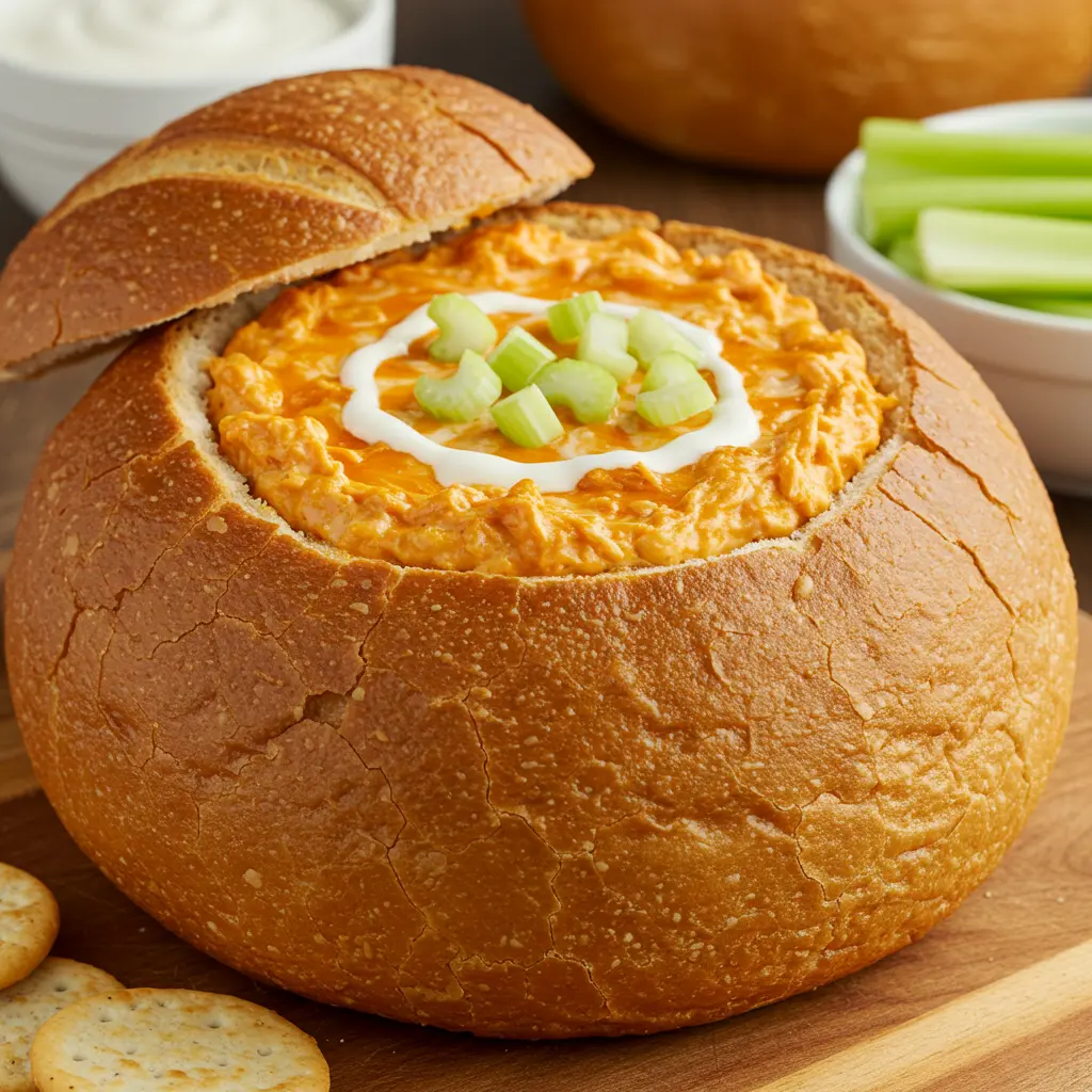 8. Buffalo Chicken Stuffed Bread Bowl