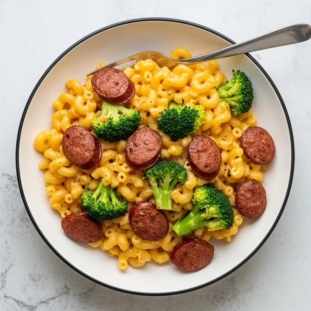 - While it’s still hot and cheesy, stir in the browned sausage slices and the steamed broccoli.
