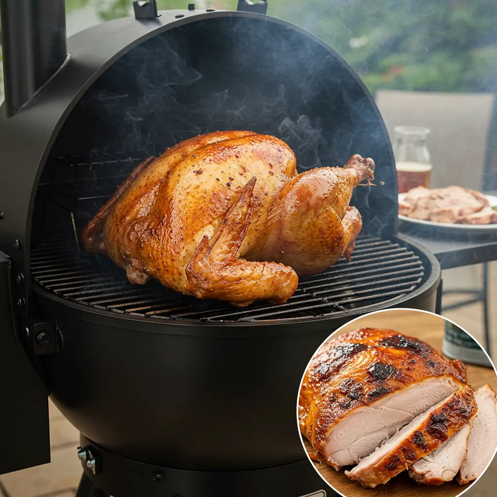 - Smoke for 3-5 hours (depending on size and cut), spritzing with chicken broth or apple juice every hour after the first hour if desired, until the internal temperature reaches 165°F (74°C) for breasts and 175-185°F (79-85°C) for thighs. The chicken should be very tender.