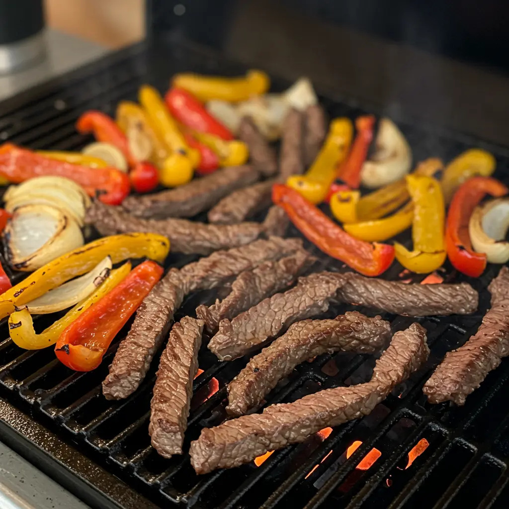 Sizzling steak strips, colorful peppers, and onions, all cooked on the pellet grill for that signature smoky char. Perfect for a build-your-own fajita night. (Use beef steak).