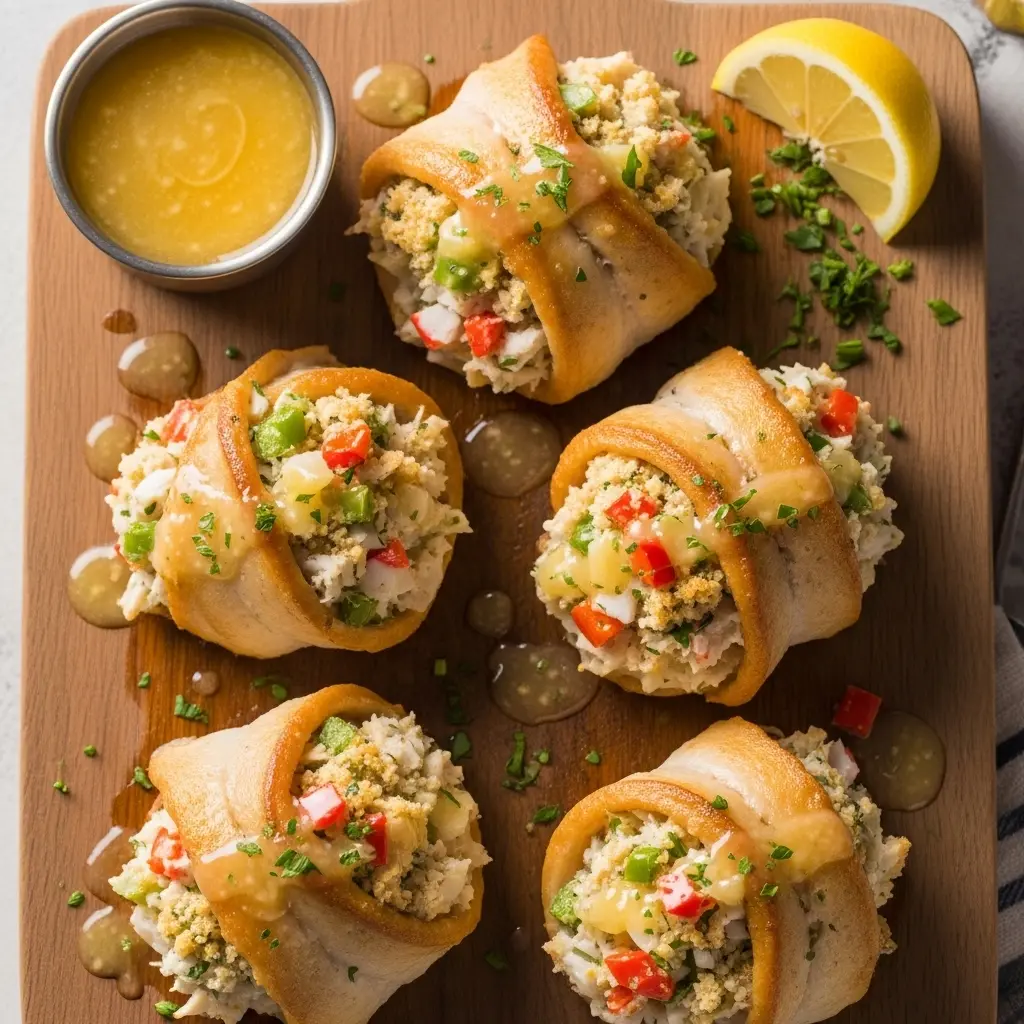 Delicate fish fillets rolled around a savory crab and vegetable filling.