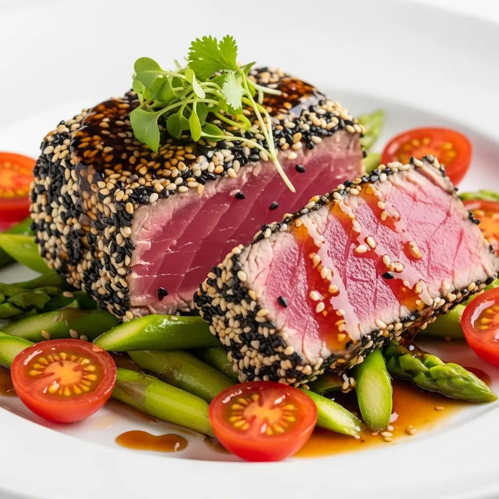 1. Brush tuna steaks with soy sauce and sesame oil.