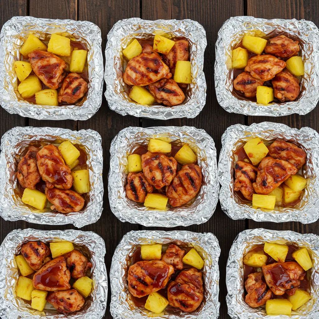 - Seal tightly and place on the grill grate over the coals. Cook for 20-25 minutes, flipping halfway through, until the chicken is cooked through.