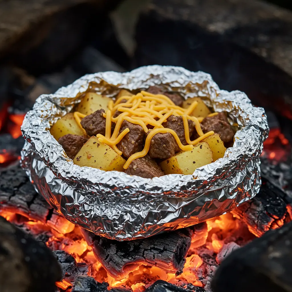- Place the packets directly on hot coals and cook for 20-30 minutes, flipping once, until the potatoes are tender and the beef is cooked through.