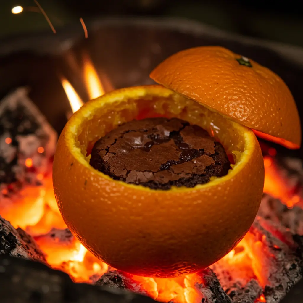 A classic, magical camping trick where an orange peel becomes a tiny, single-serving oven.