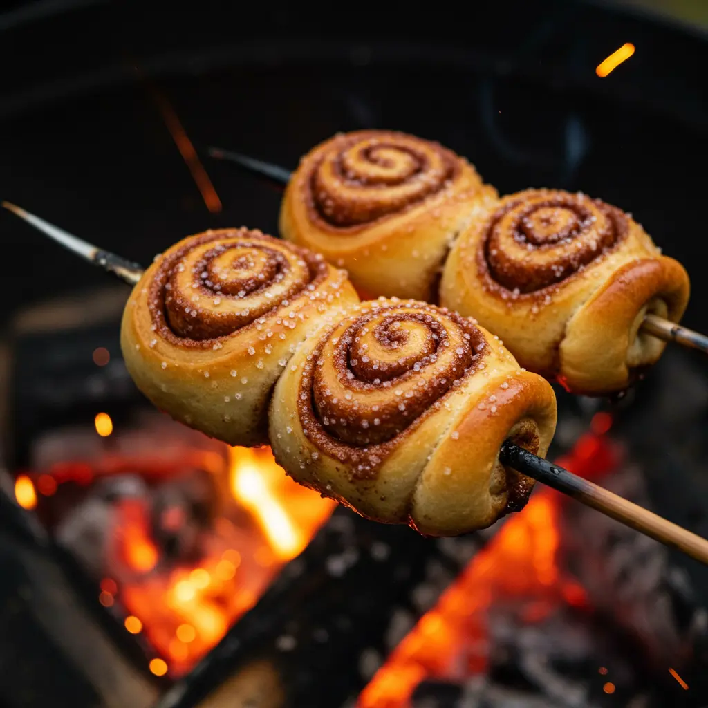 A warm, gooey cinnamon roll cooked right over the fire. This is a game-changer.