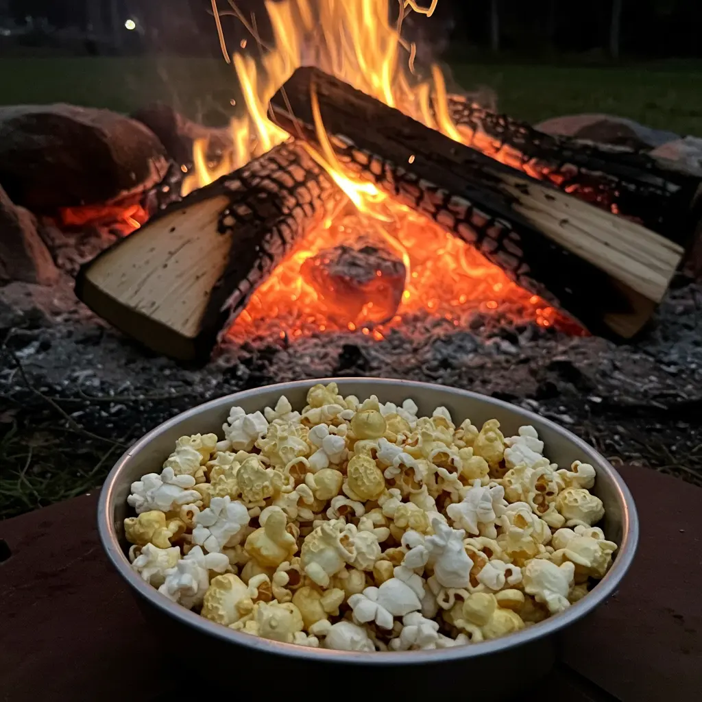 - Once the popping slows down, carefully remove it from the fire. Open the packet away from your face to avoid steam. Drizzle with melted butter and salt.
