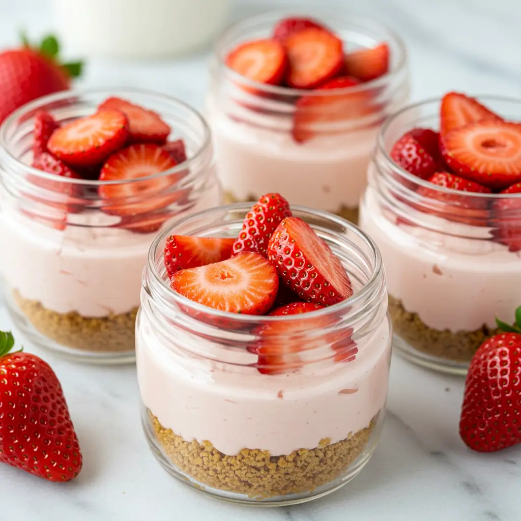 1. No-Bake Strawberry Cheesecake Jars