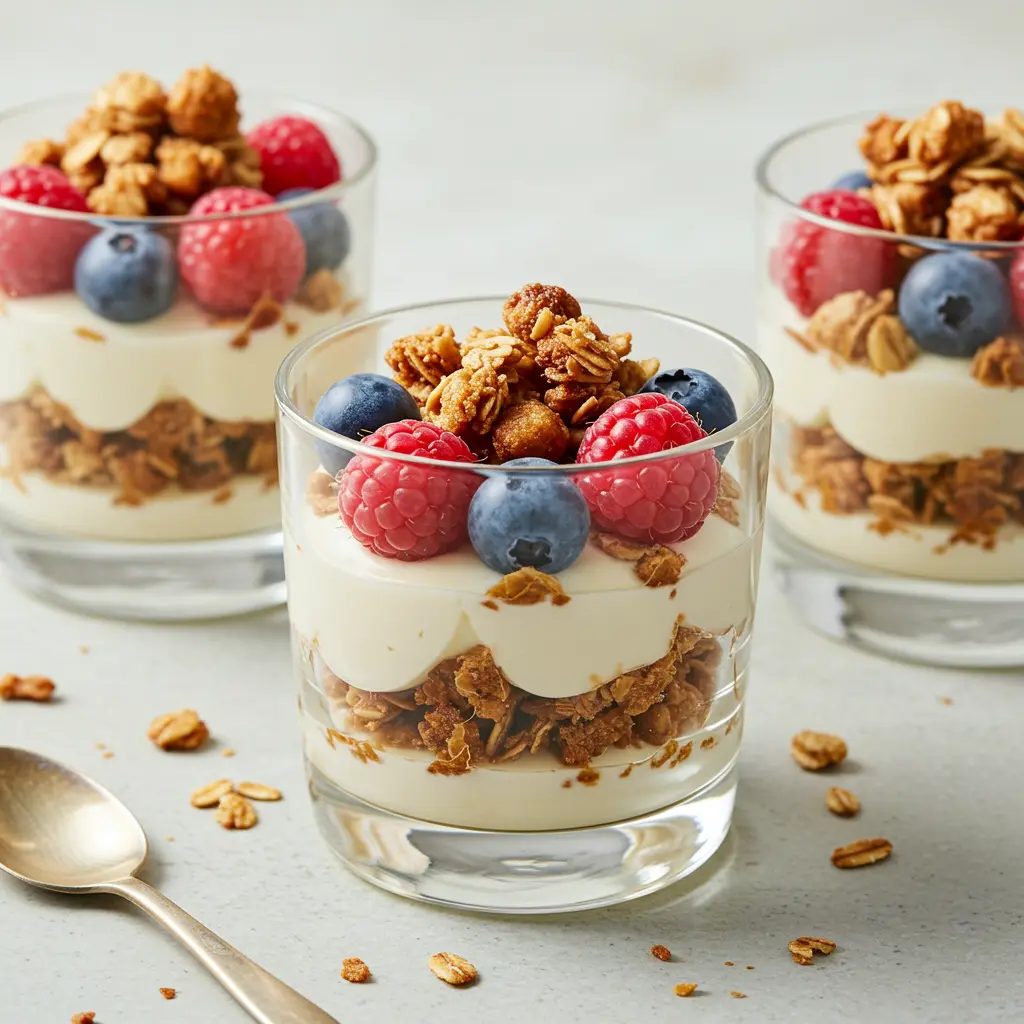 - In a glass, create layers: a spoonful of yogurt, a drizzle of honey, a sprinkle of granola, and a few berries.