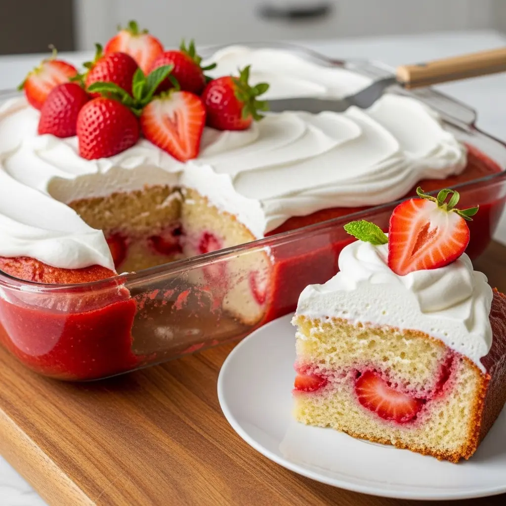 14. Healthy Strawberry Poke Cake