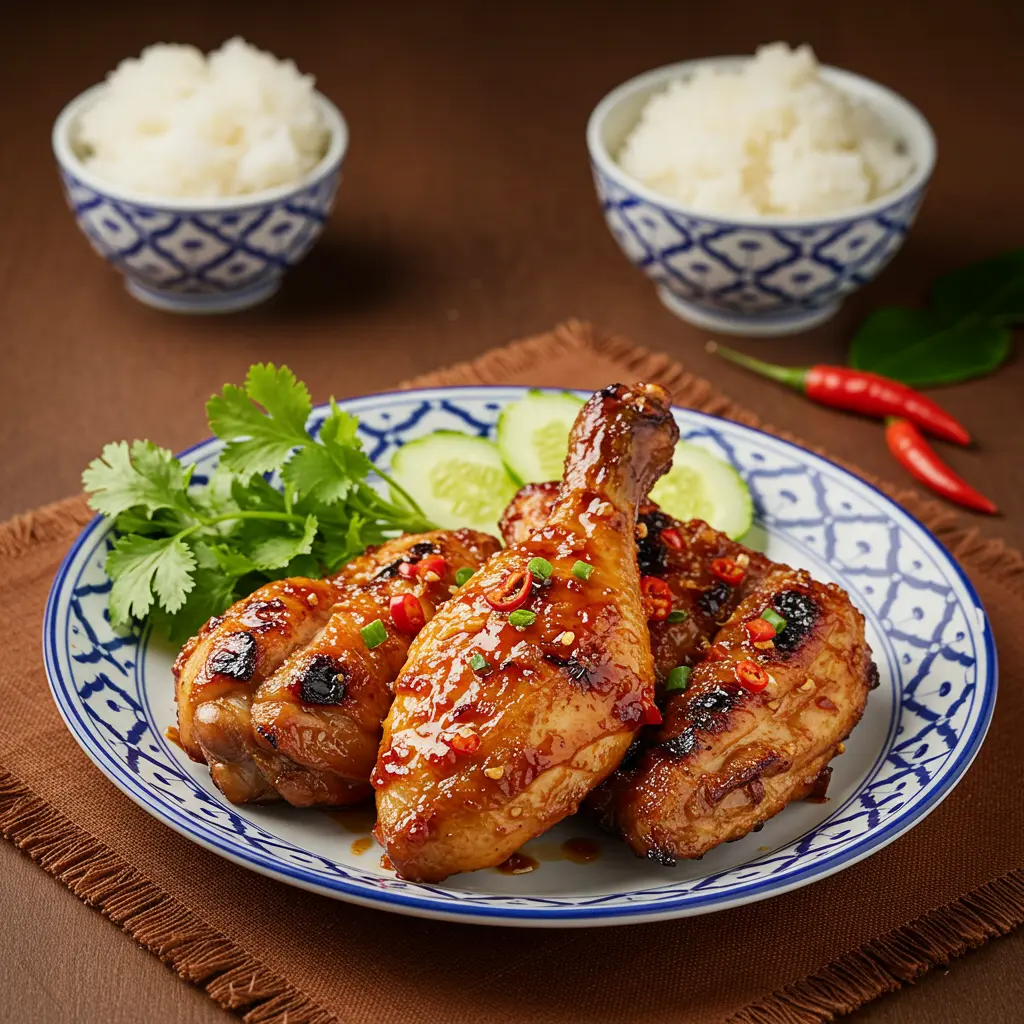 This Thai grilled chicken recipe is inspired by Gai Yang, featuring a fragrant marinade and a sweet, tangy, and slightly spicy glaze.