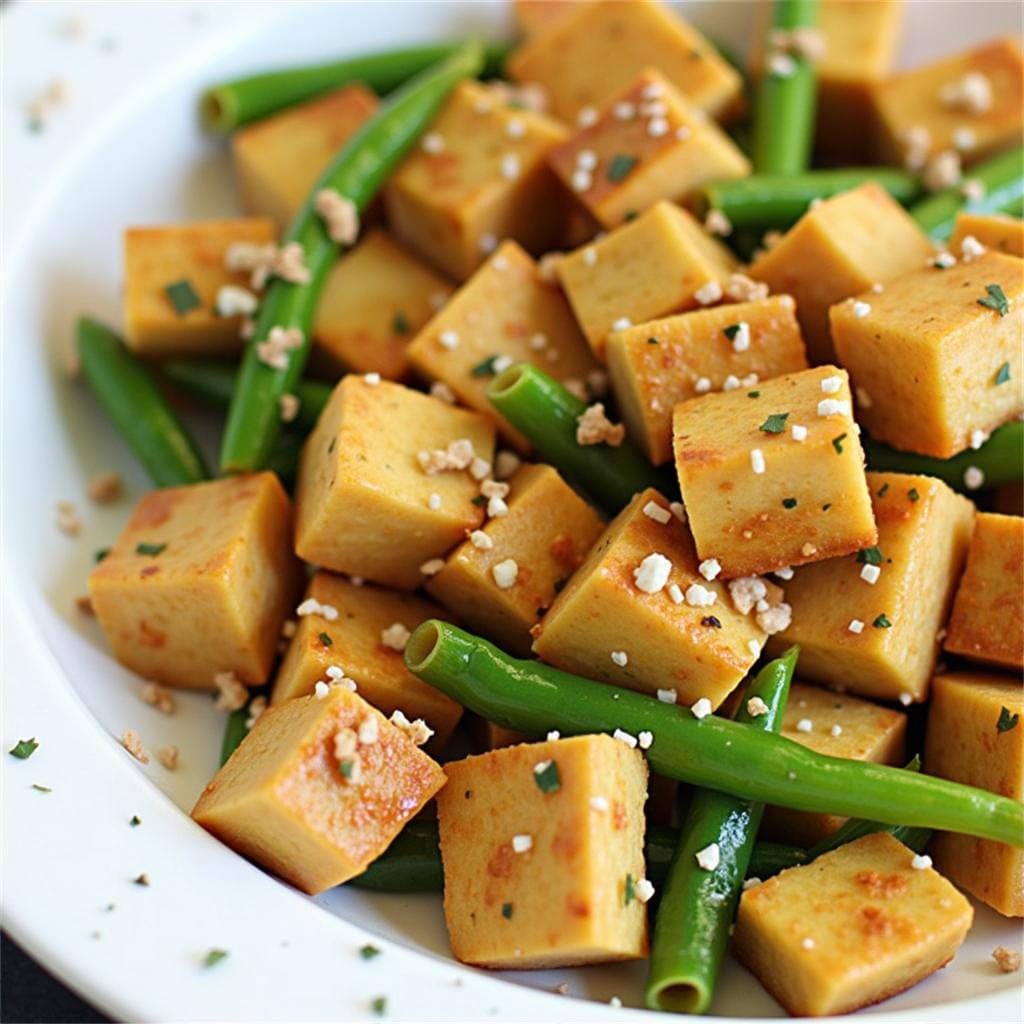 - Add the tofu cubes and cook until golden brown and crispy on all sides, about 5-7 minutes.