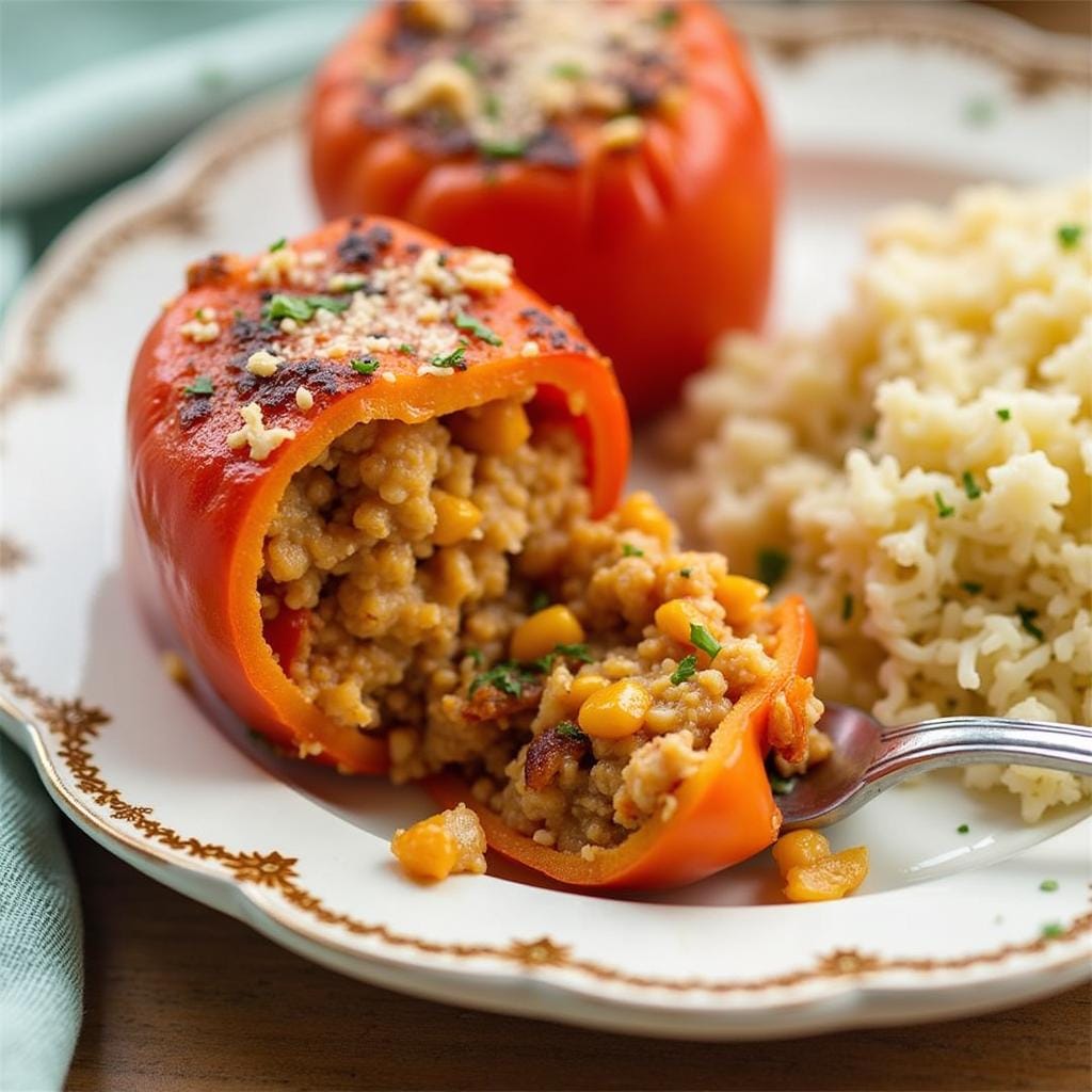 - Stuff the bell peppers with the quinoa mixture and place in a baking dish.