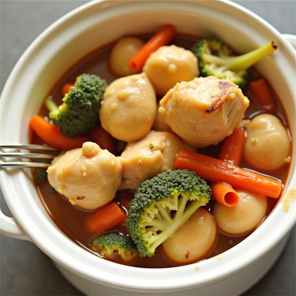 - Add chicken, vegetables, and broth to the crockpot.