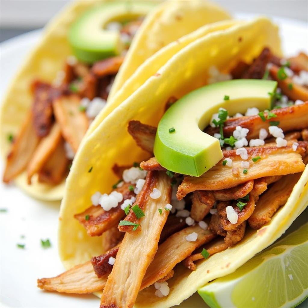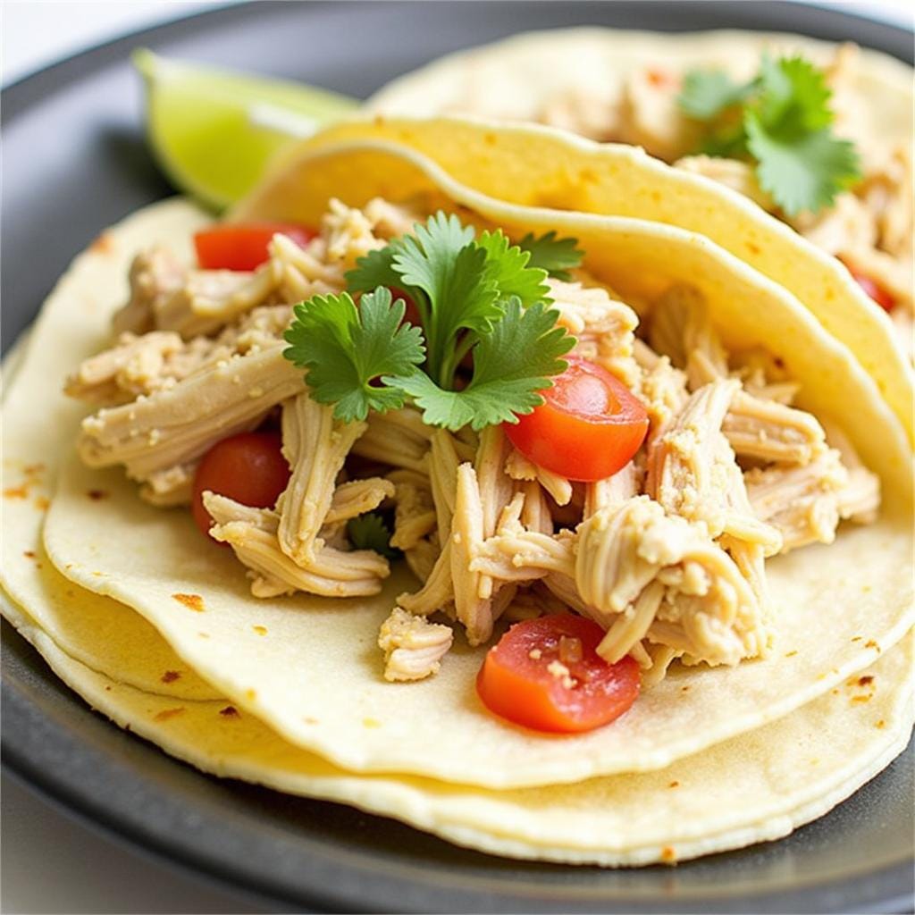 - Shred chicken and serve in tortillas with desired toppings.