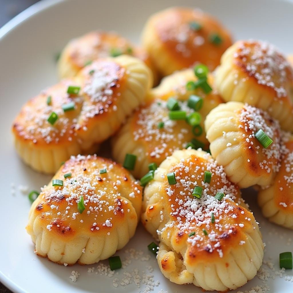 - Mix potatoes, onion, eggs, flour, salt, and pepper.