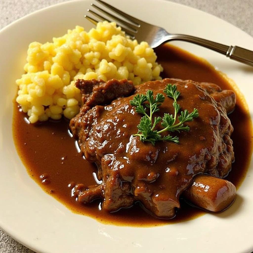Tip: Browning the rolled beef before simmering locks in juices and adds a rich, caramelized flavor to the dish.