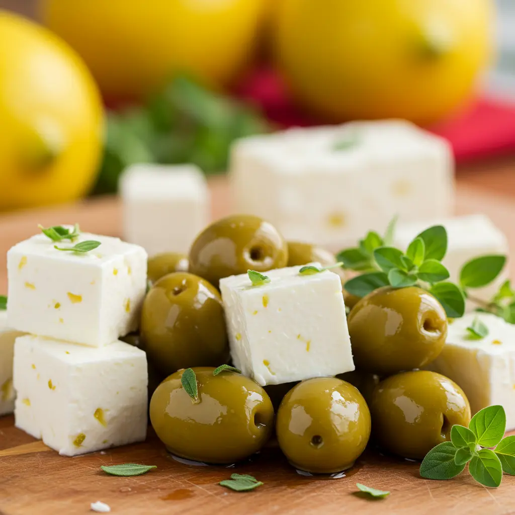 - In a food processor, combine the crumbled feta, olive oil, Greek yogurt, garlic (if using), and lemon juice.