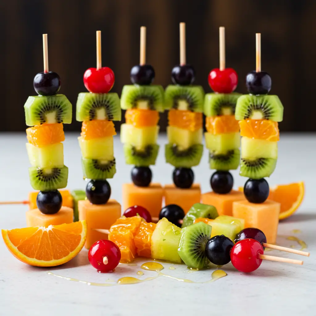 - Just before serving, drizzle the honey lime mixture over the fruit skewers.