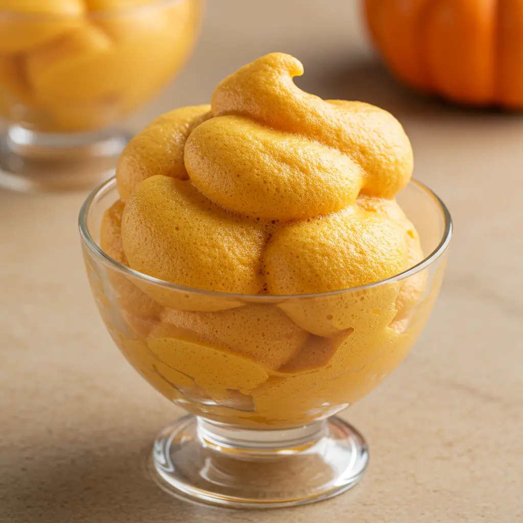 4. Gently fold the pumpkin mixture into the whipped aquafaba until just combined. Do not overmix, or you will deflate it. Serve immediately.