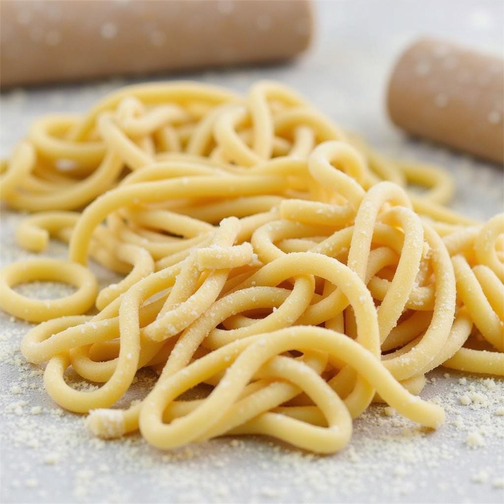 Tip: Durum wheat flour is ideal for extruded pasta shapes. If rolling by hand, ensure the dough is well-rested to make it easier to work with.