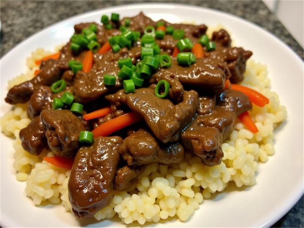 - Stir-fry beef in sesame oil until browned, about 4-5 minutes.