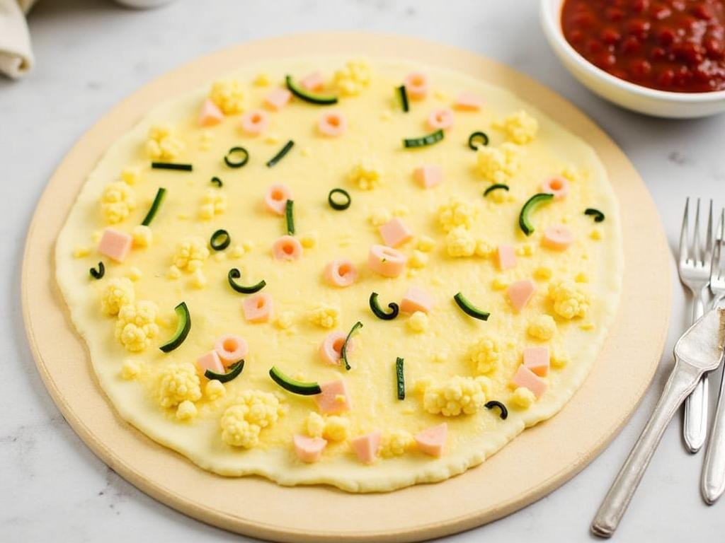 - Press the mixture into a pizza shape on a parchment-lined baking sheet.