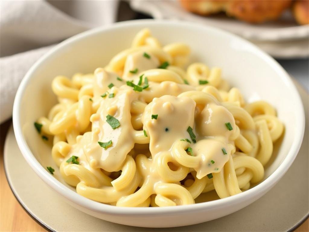 - In a separate saucepan, melt butter and add heavy cream, garlic powder, salt, and pepper.