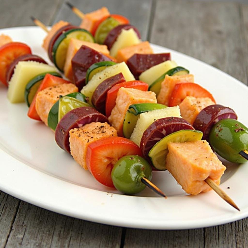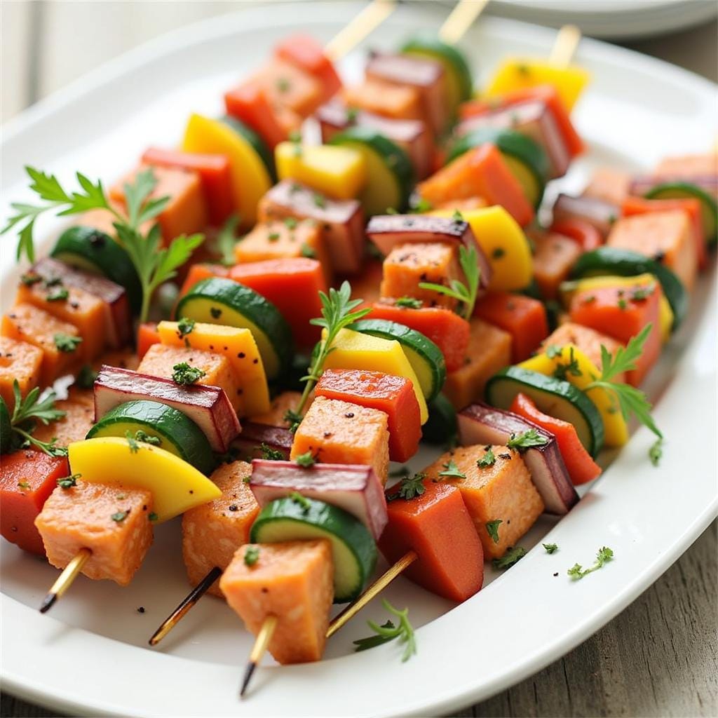 18. Salmon and Vegetable Skewers