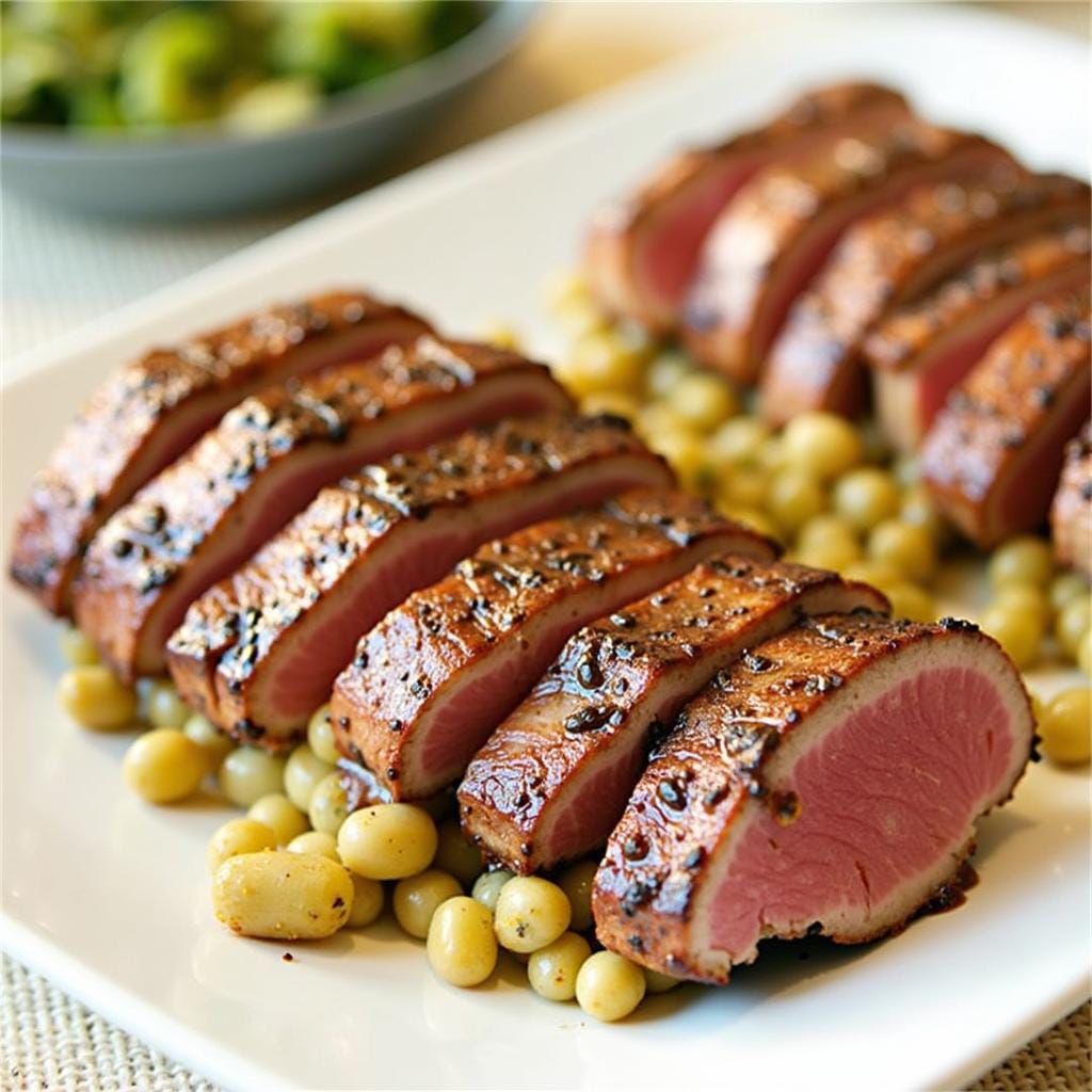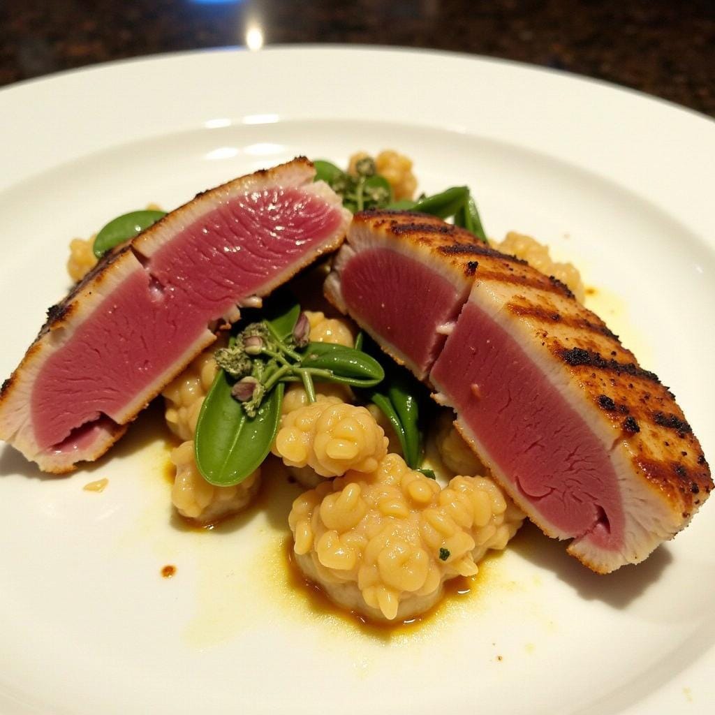 - Sear tuna steaks for 2-3 minutes per side, leaving the center rare.