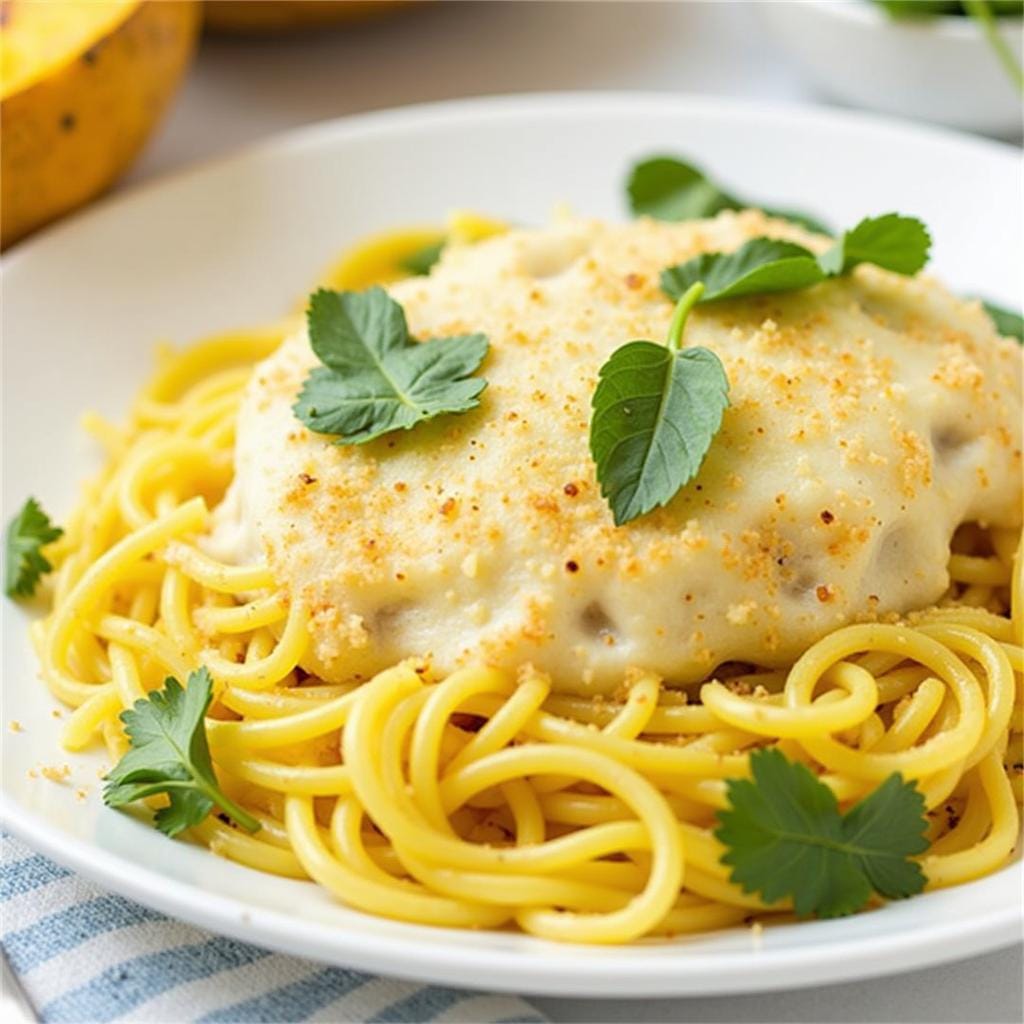 A creamy, rich dish with a healthier twist using spaghetti squash.