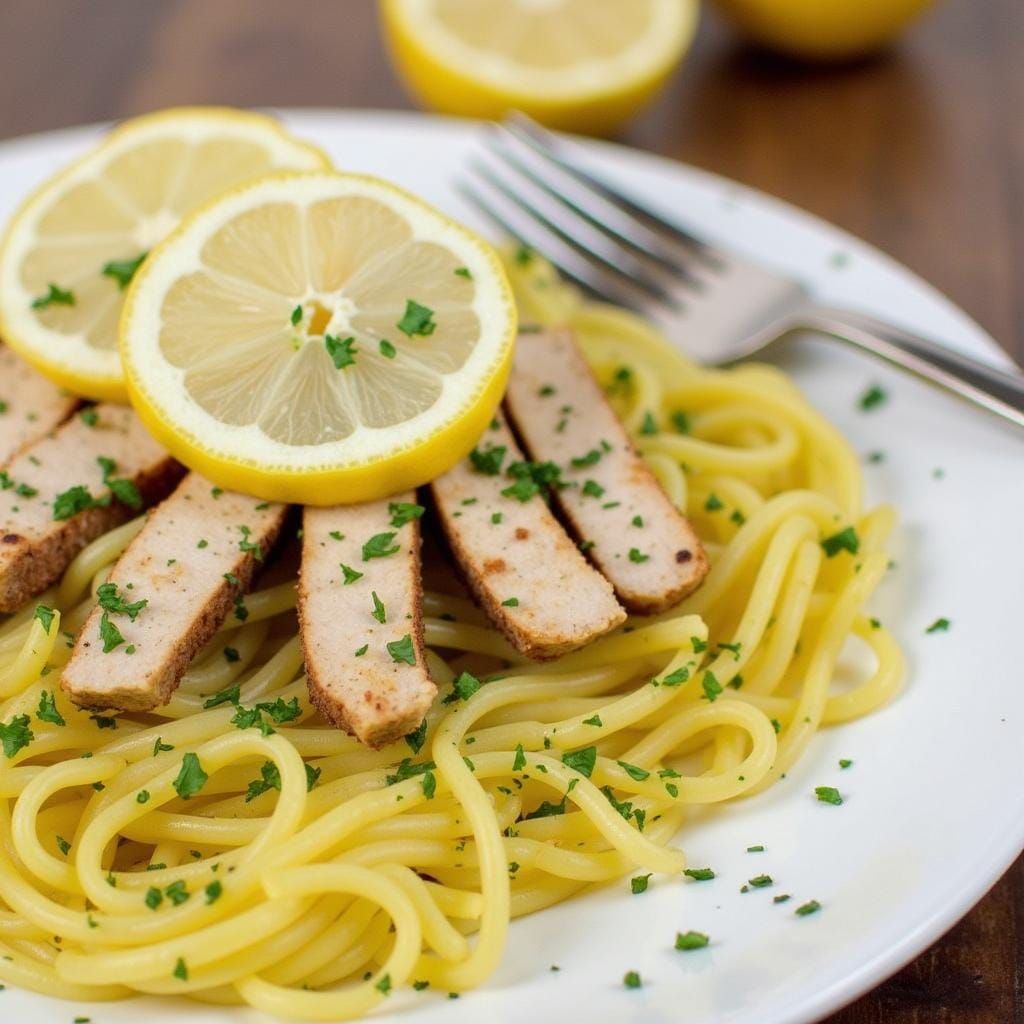A bright, citrusy dish with tender chicken and a flavorful garlic sauce.