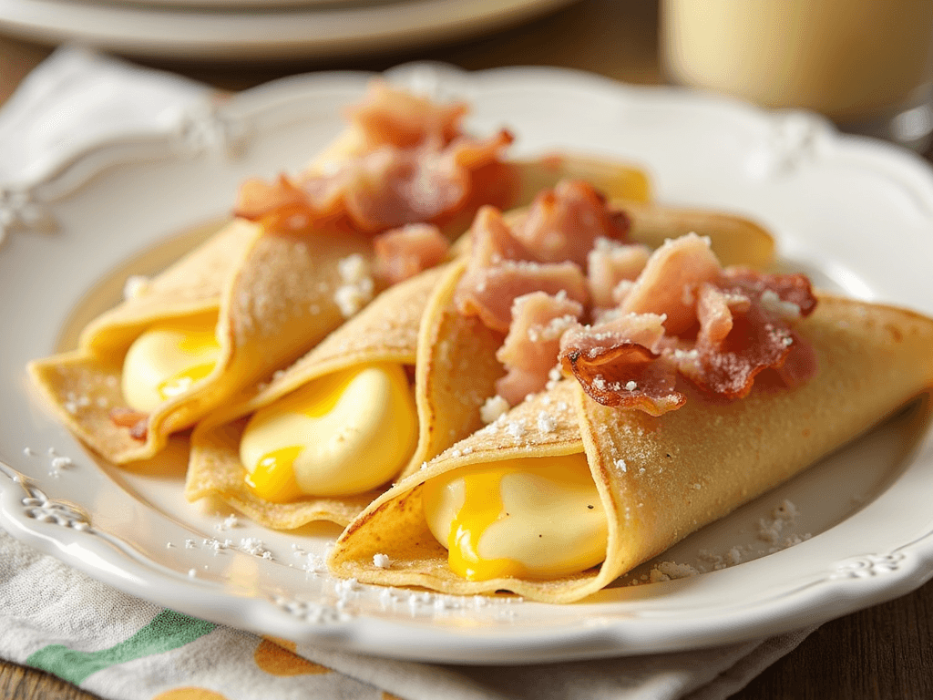 Tip: For crispy bacon, bake it in the oven at 400°F for about 15 minutes before crumbling it into the crepes.