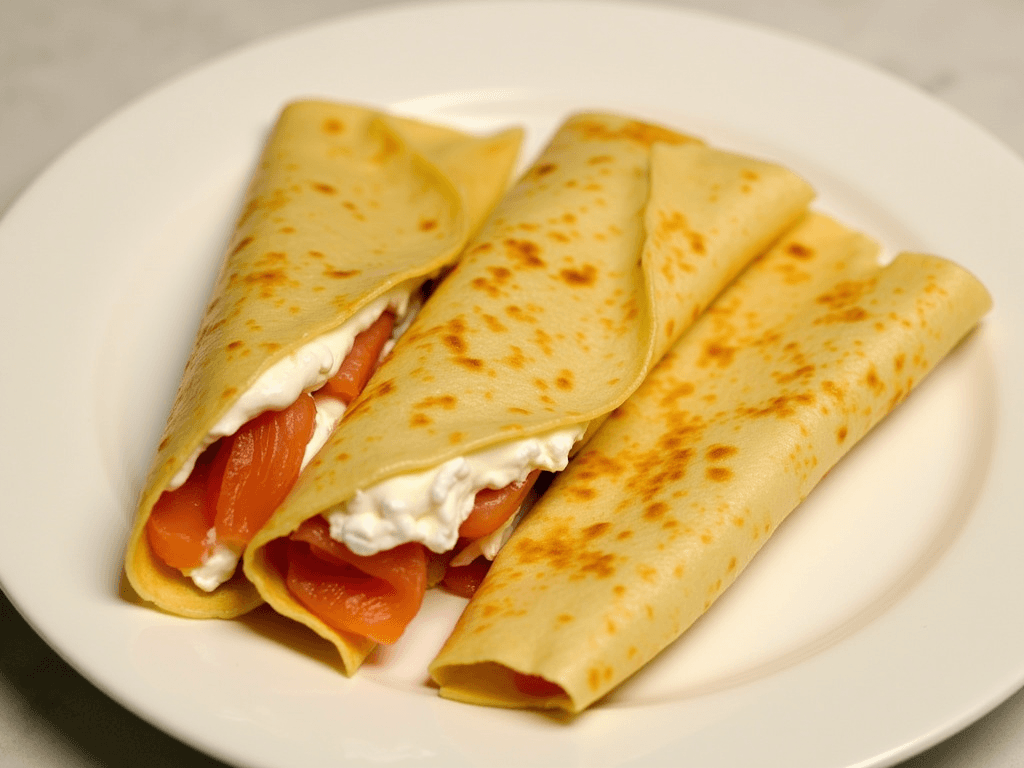 Tip: To balance the richness, add a few thin slices of cucumber to each crepe for a refreshing crunch.