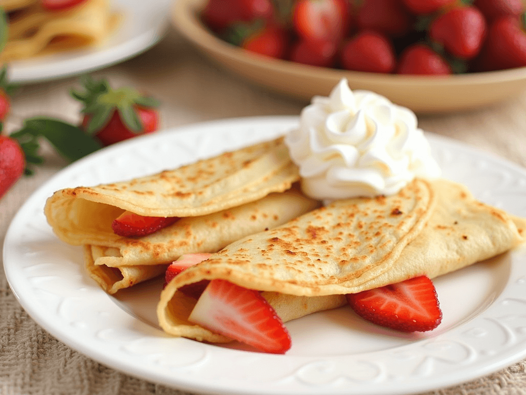 - Roll or fold the crepes and serve with whipped cream if desired.