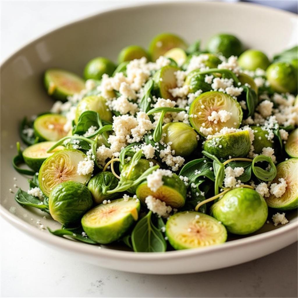Tip: Massage the shaved Brussels sprouts with the dressing for a few minutes to soften their texture and enhance the flavor.