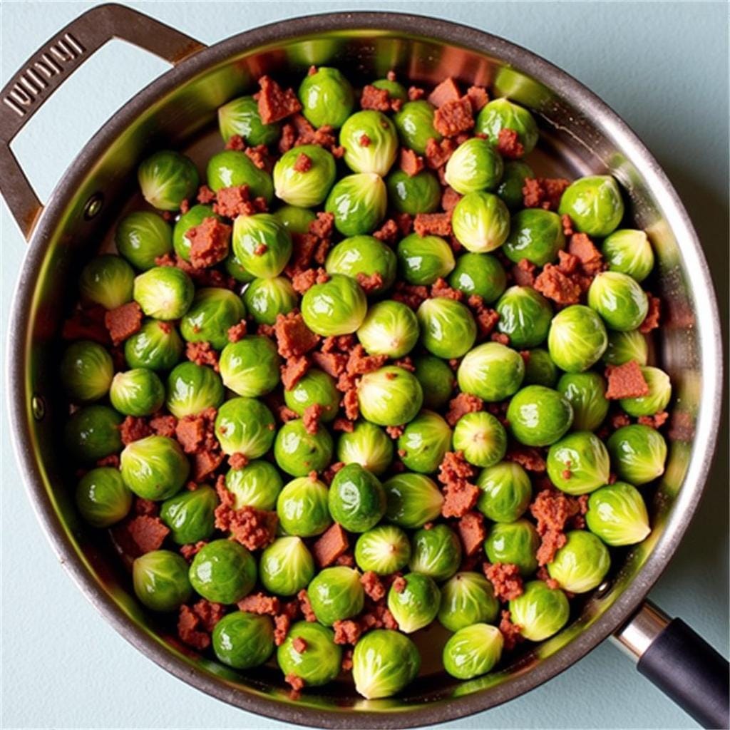 - Add Brussels sprouts to the bacon grease and sauté until golden brown.