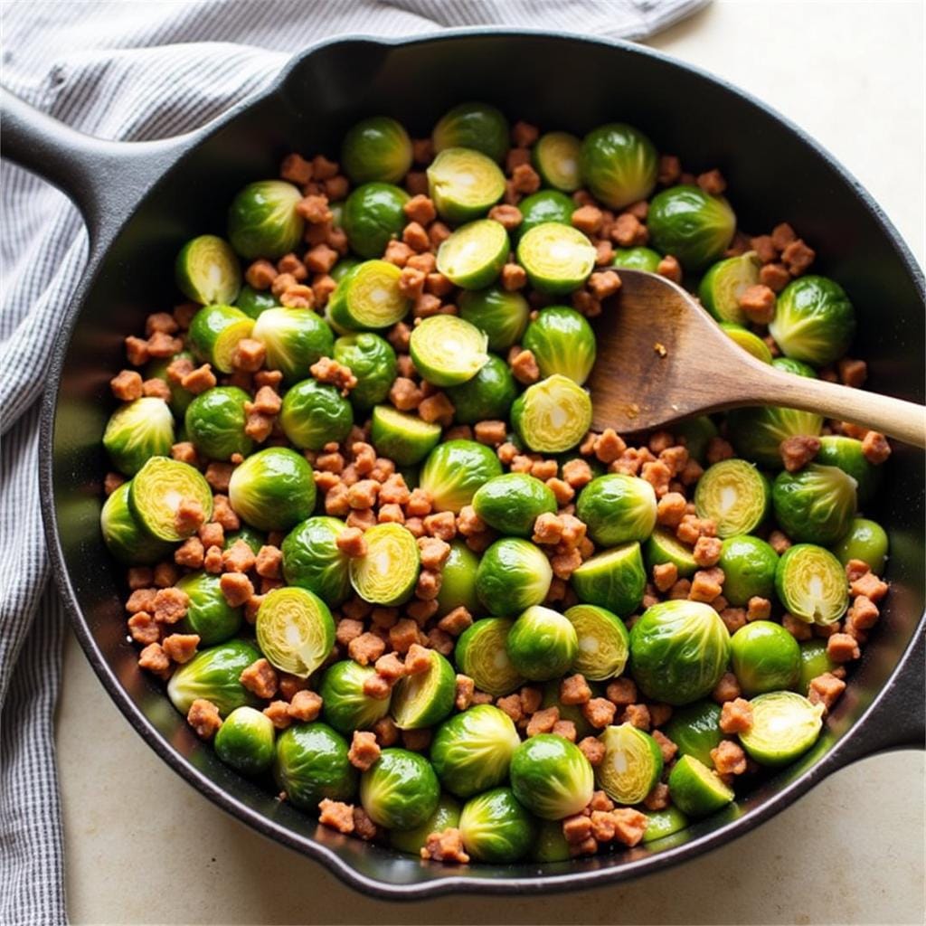 - Add Brussels sprouts and sauté for 5 minutes.