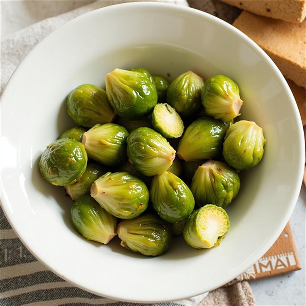- Heat olive oil in a pan and sauté Brussels sprouts until golden.