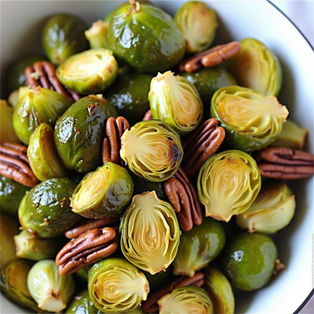 - Sprinkle pecans over Brussels sprouts and roast for another 5 minutes.