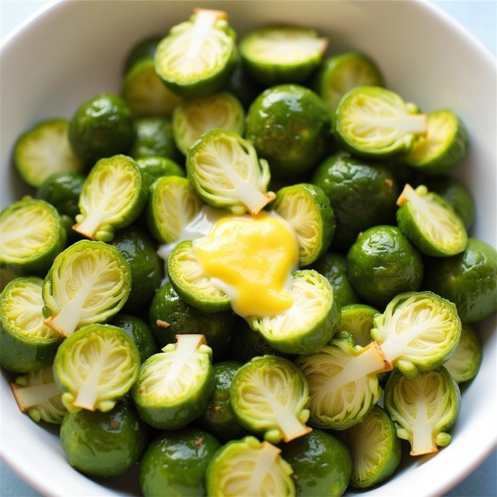 - Drizzle sauce over Brussels sprouts and toss.