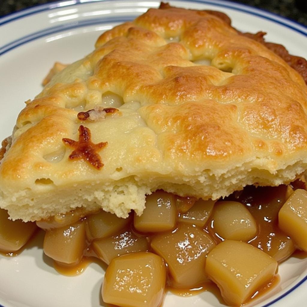 - Cover with the pie crust, sealing the edges and cutting slits in the top.