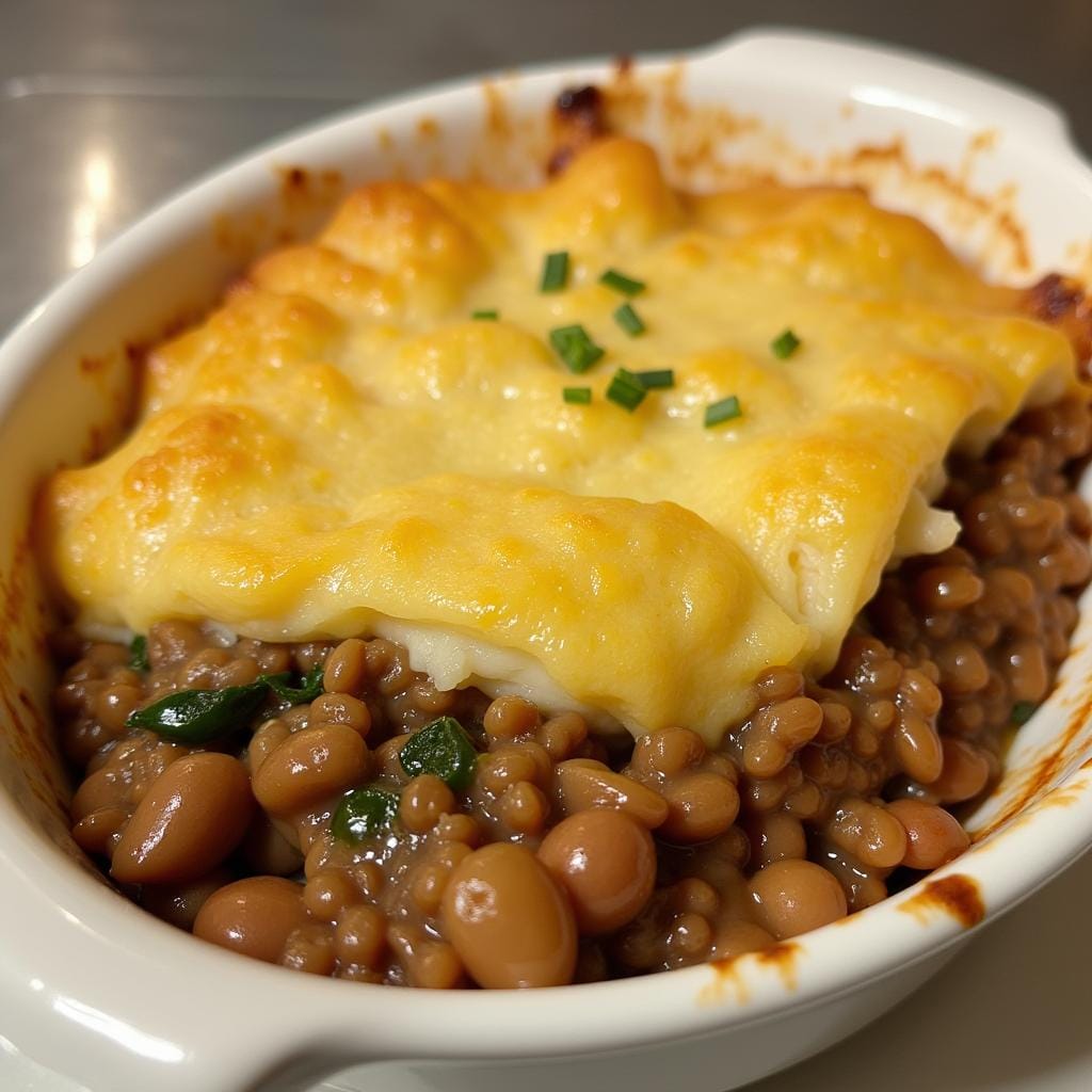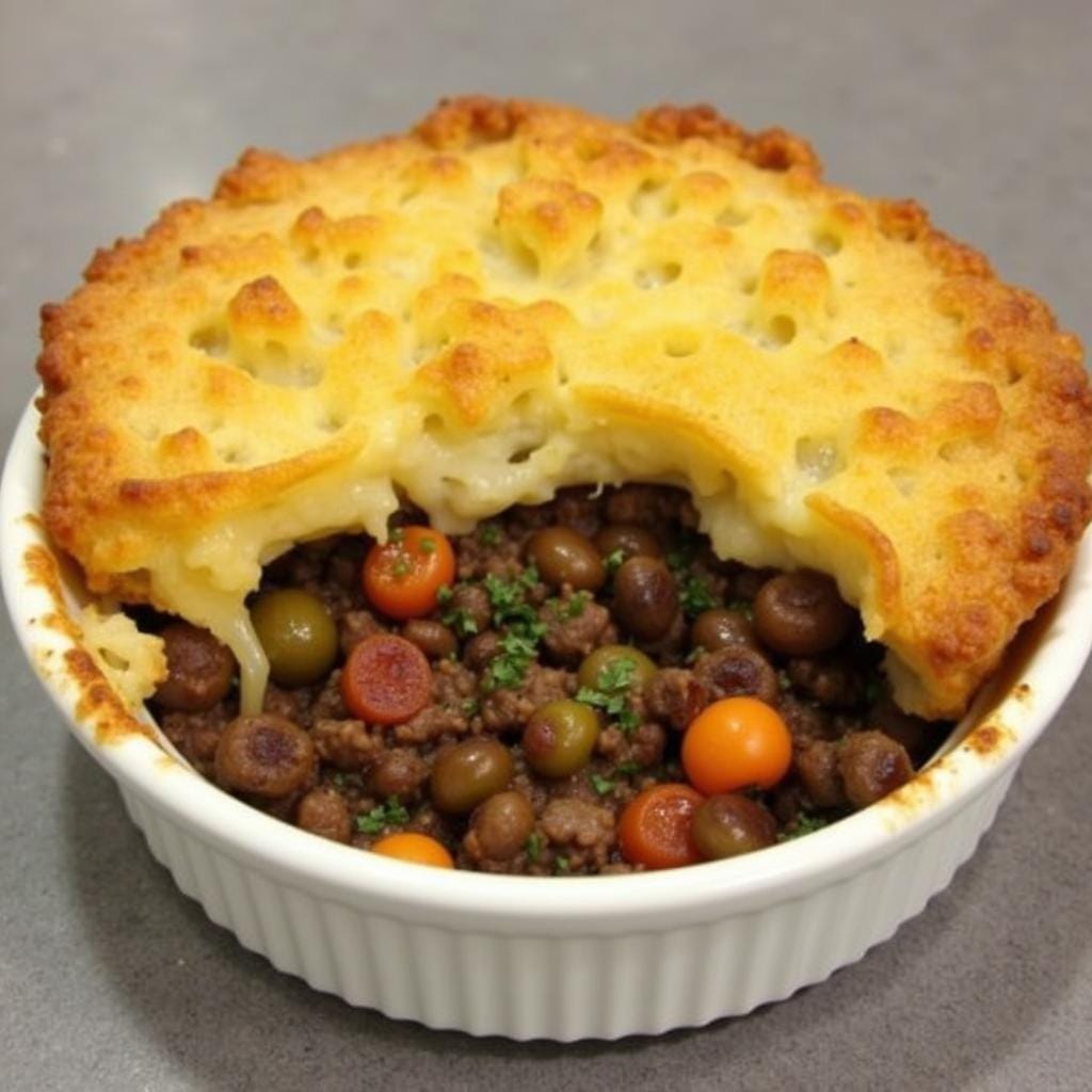 - Transfer the mixture to a baking dish and top with mashed potatoes.