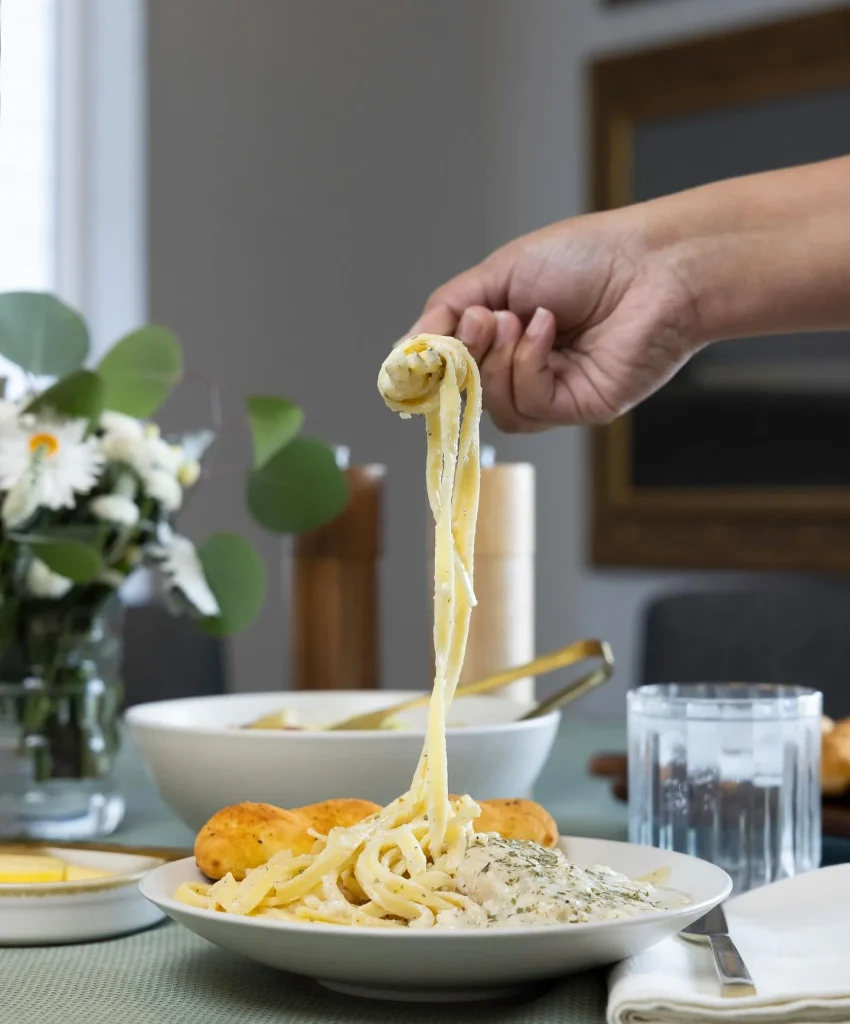 - Place chicken, Alfredo sauce, and milk in the crockpot.