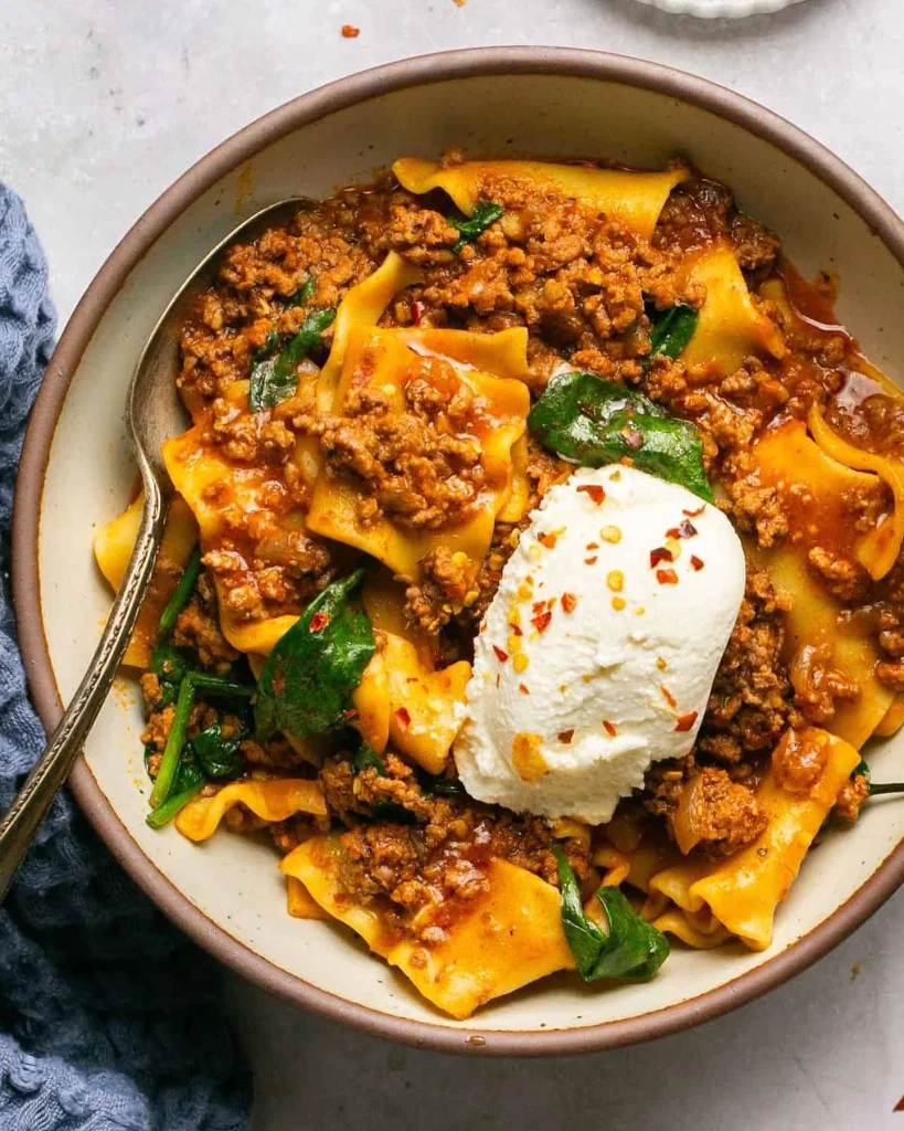Tip: Use no-boil lasagna noodles to save time, and layer them with a thin layer of sauce to prevent them from drying out.