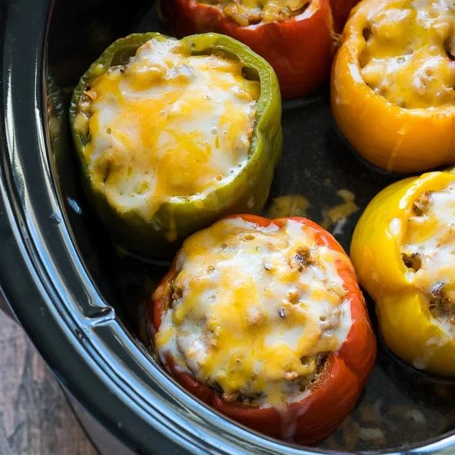 - Stuff the mixture into bell peppers and place them in the crockpot.