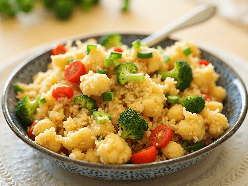 - Steam or microwave cauliflower rice until soft, then squeeze out excess moisture using a cheesecloth.