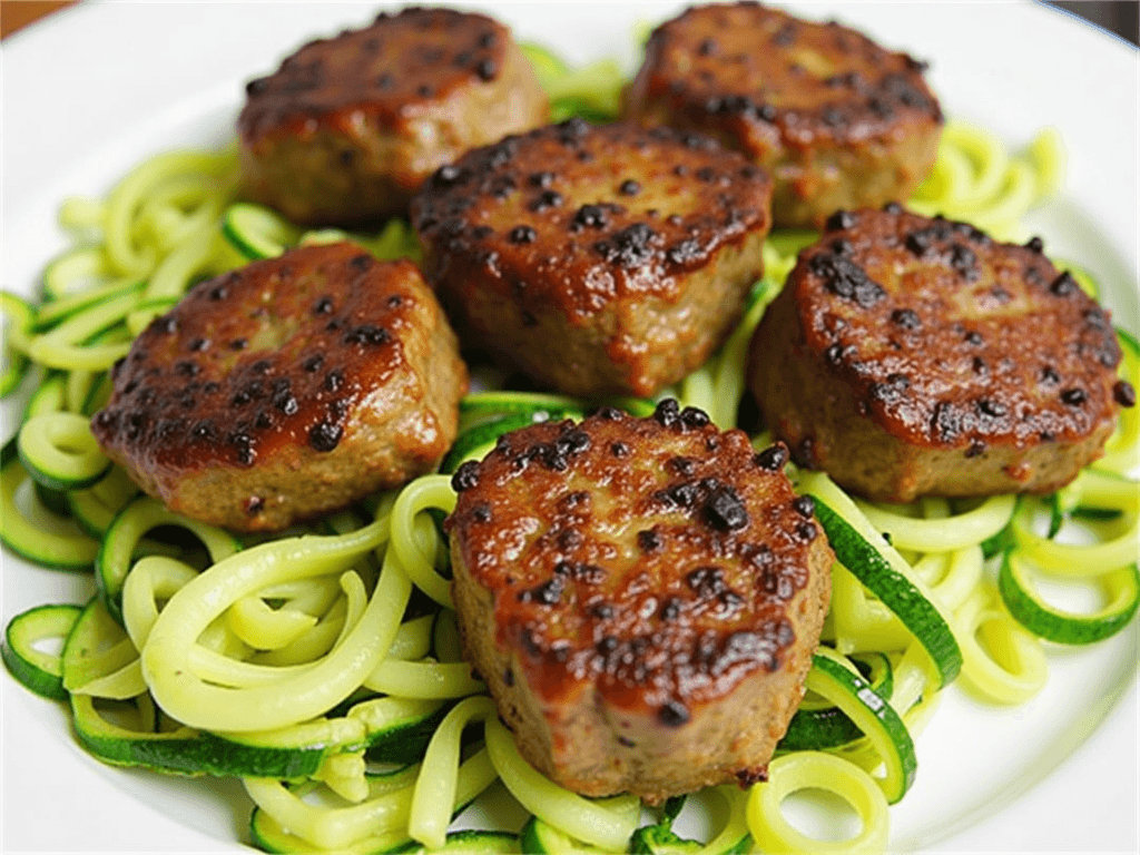 1. Garlic Butter Steak Bites with Zucchini Noodles