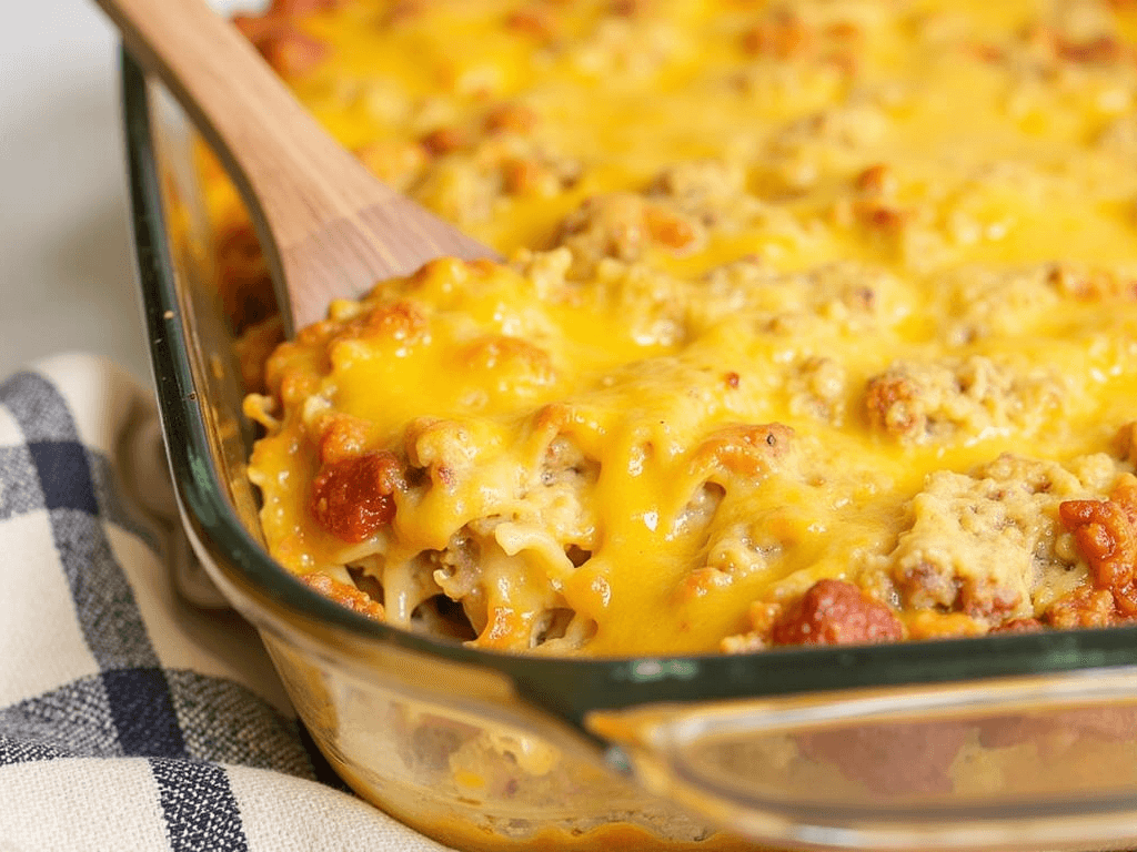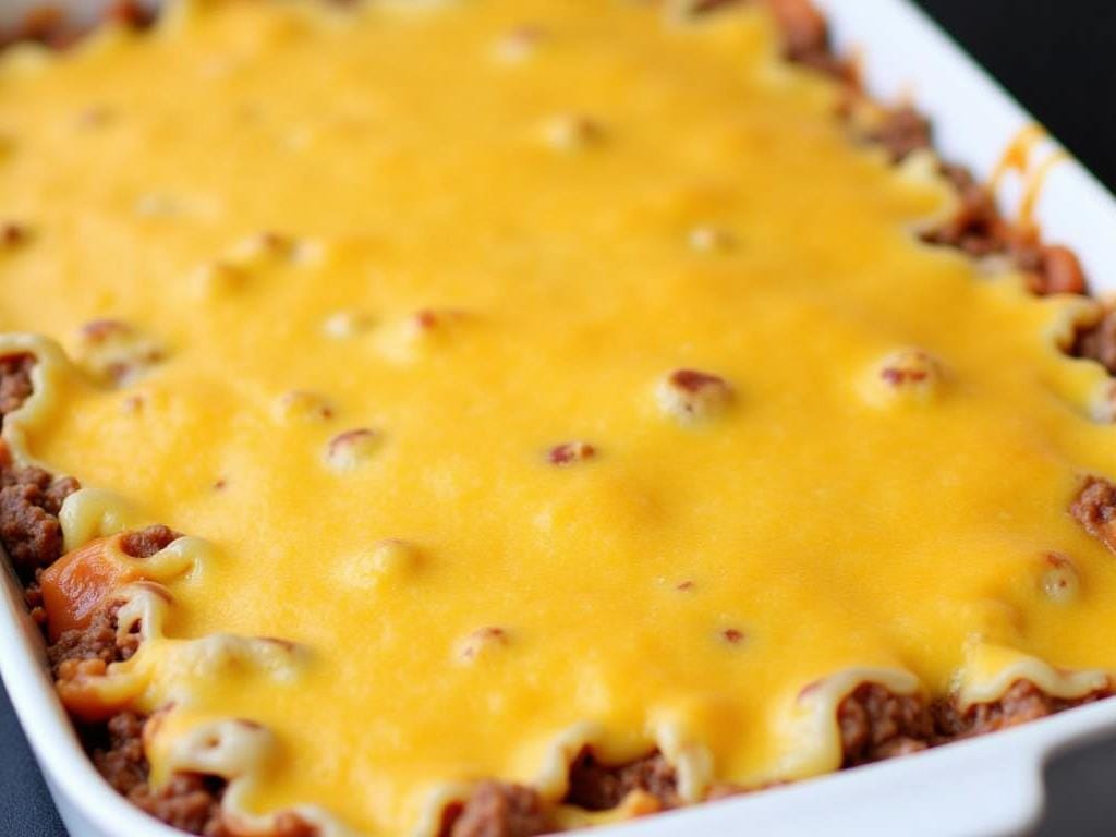 - Transfer the beef mixture to the baking dish and sprinkle with shredded cheese.